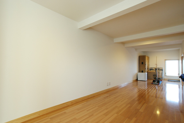 ①井桁に組んだ梁を現わしにした大空間の2階LDK